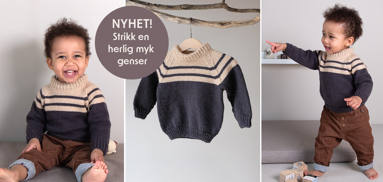 Vi har et stort antall unike strikkeoppskrifter, innen de fleste kategorier. Gensere, jakker, strikkesett, koseposer, lue, hals og mye mer!
