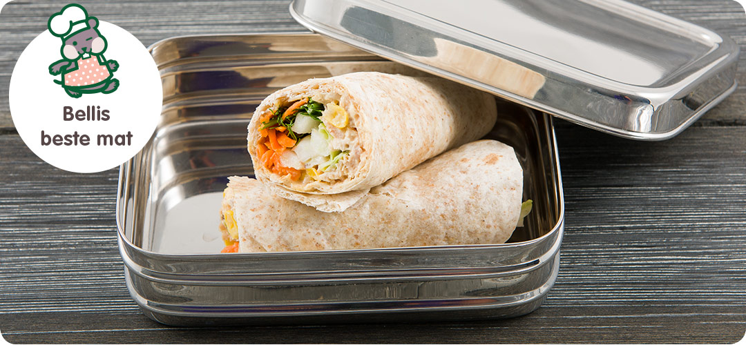 Akkurat som vaffelen kan wrapsen varieres i det uendelige. Bruk tacorester, laks fra gårsdagens middag, eller helt andre ting du finner i kjøleskapet. Bruk gjerne grove lefser, eller aller best; lag dem selv! Det er enkelt og morsomt. Her er et tips fra Belli – lag en tunfisksalat til wrapsen!