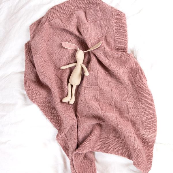 Strikk Babyteppe i halvpatent, stort – garnpakke i Bluum Pure Eco Baby Wool