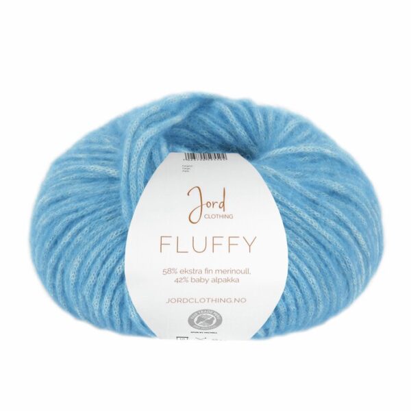 Fluffy fra Jord Clothing er er en ny kvalitet blowgarn i en unik fiberkombinasjon. Mykeste baby alpakka (42%) rundt en kjerne av fineste merinoull (58%), gir et luftig garn som egner seg godt til gensere, jakker og tilbehør for både barn og voksne. Garnet er produsert i Peru og garantert mulesingfritt, da parasitten som forårsaker dette problemet ikke finnes der.