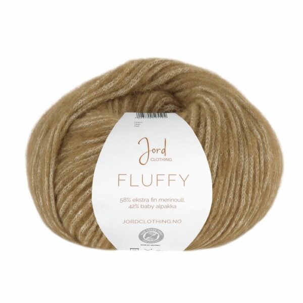 Fluffy fra Jord Clothing er er en ny kvalitet blowgarn i en unik fiberkombinasjon. Mykeste baby alpakka (42%) rundt en kjerne av fineste merinoull (58%), gir et luftig garn som egner seg godt til gensere, jakker og tilbehør for både barn og voksne. Garnet er produsert i Peru og garantert mulesingfritt, da parasitten som forårsaker dette problemet ikke finnes der.