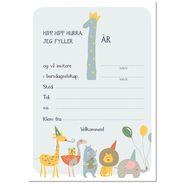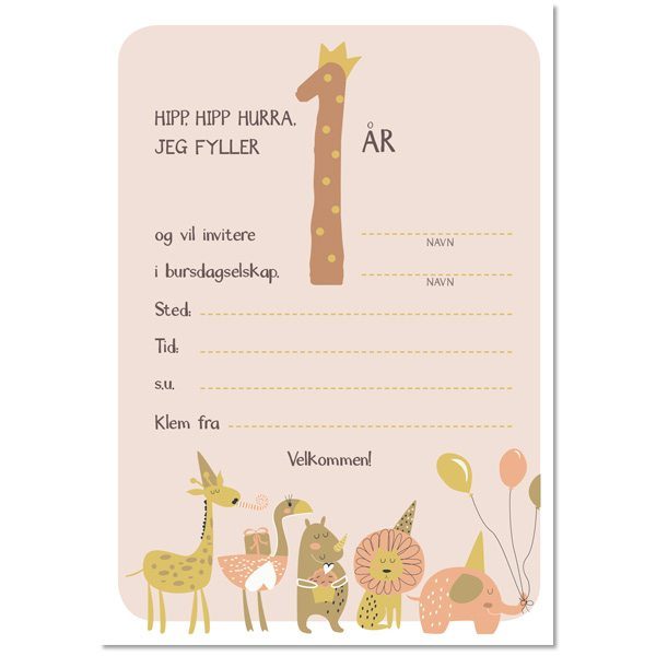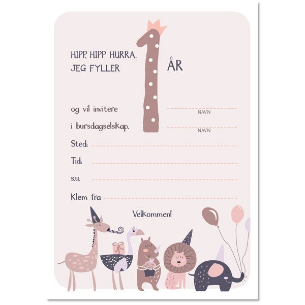 Last ned og skriv ut fine bursdagsinvitasjoner. Velg mellom tema i blått, brunt eller rosa. Fyll ut for hånd og inviter venner og familie til barnets første bursdagsselskap.
