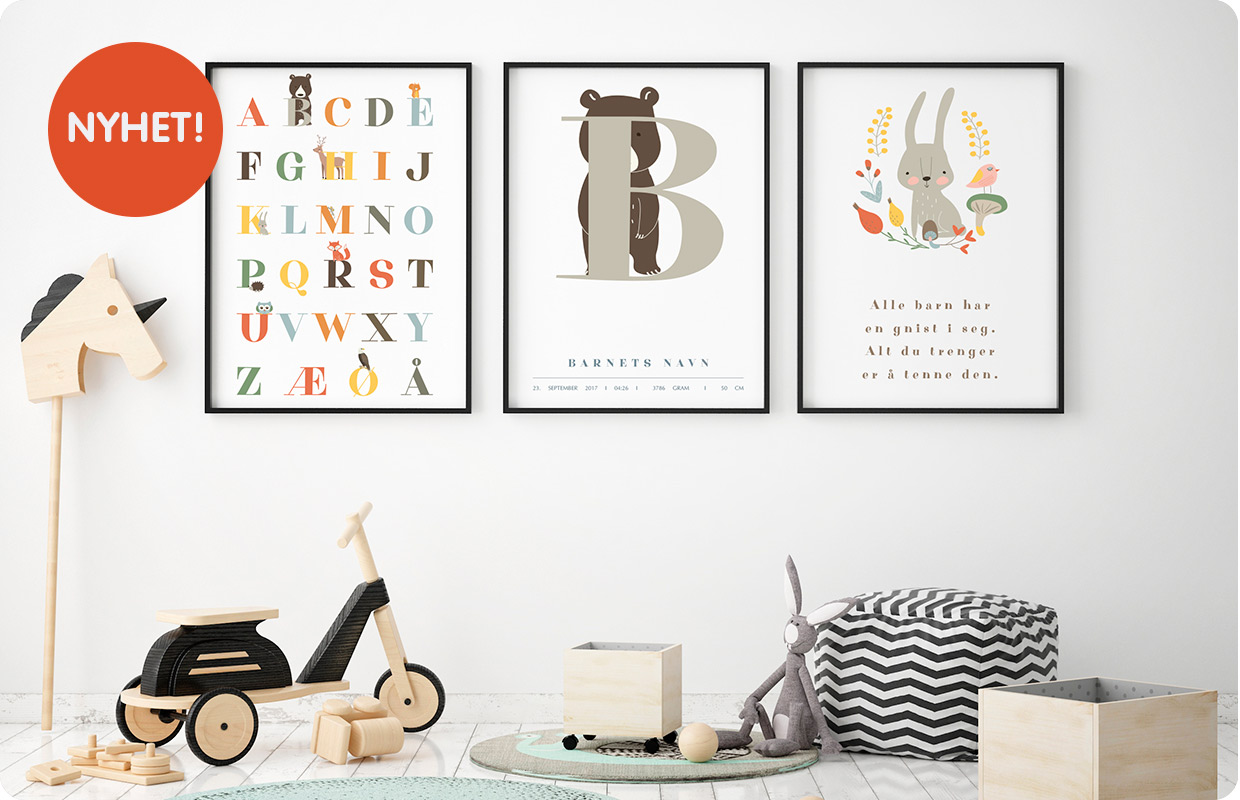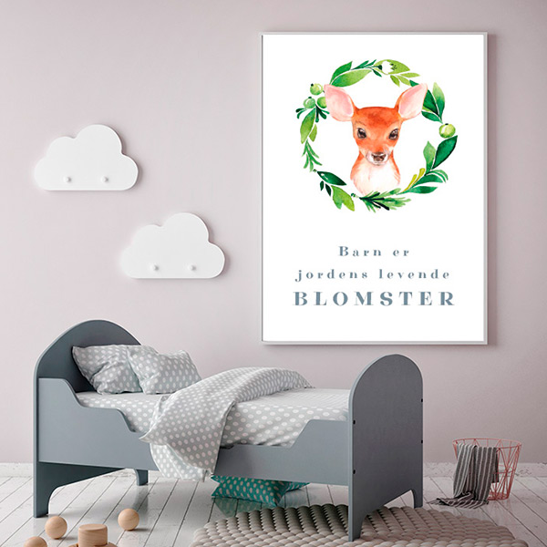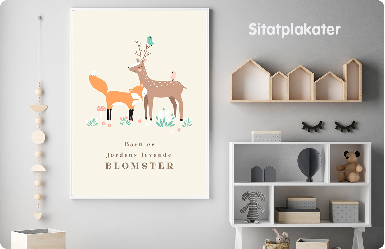 Få det fint på barnerommet med plakater fra Bluum. Velg mellom navneplakater, plakater med dyremotiv eller sitater, eller canvas til å henge direkte på vegg. Våre plakater er i tykt kunstpapir med høy trykkvalitet.