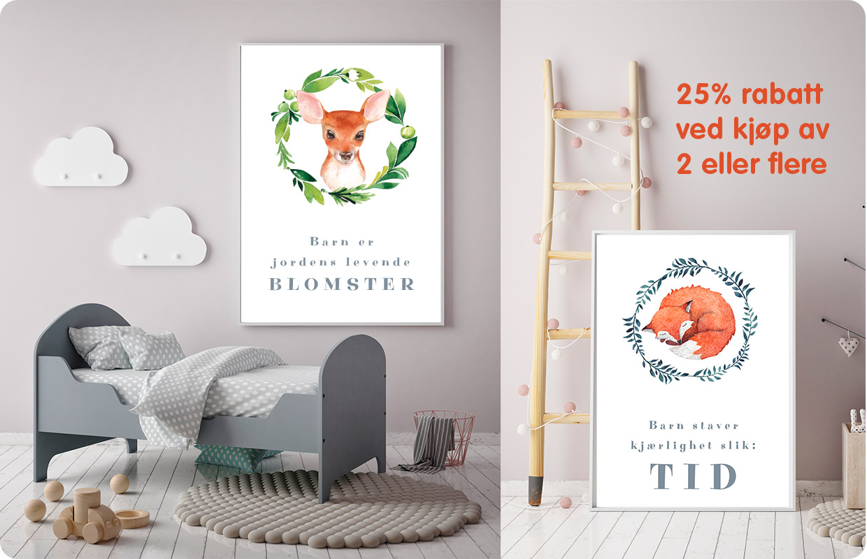 Kjøp 2 eller flere plakater og få 25% rabatt. Gjelder alle kombinasjoner av plakater i kategorien.