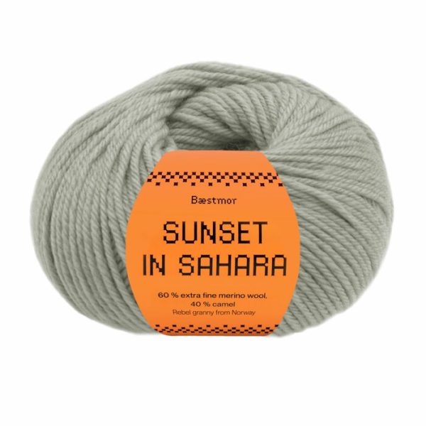 Sunset in Sahara fra House of Yarn er et er et eksklusivt garn i 60 % ekstra fin merinoull og 40 % kamelhår. Denne fiberblandingen gir plagg med fantastisk skinn, elastisitet og isoleringsevne og er deilig å strikke med. Mønsterstrikk blir ekstra fint i dette garnet, men det er like godt egnet til ensfargede plagg i enten glatt- eller strukturstrikk. Plaggene er svært gode å ha på, og holder fasongen godt ved bruk.